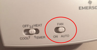 My heat pump is blowing cold air. The thermostats fan is set to on.